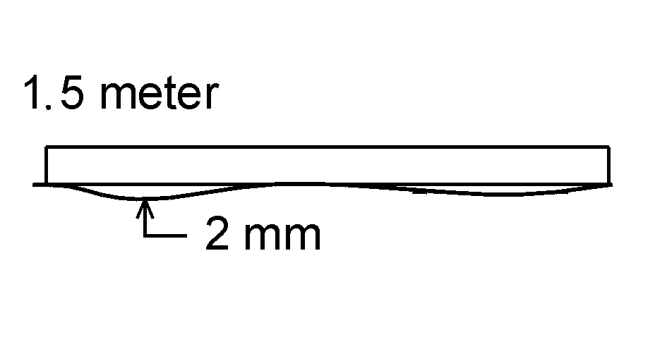 Ved alle ovennævnte underlag gælder, at undergulvet inden udlægning af stave skal have en planhed, der ikke afviger mere end 2 mm på en 1,5 meter retholt. Se figur.