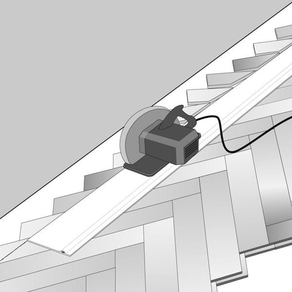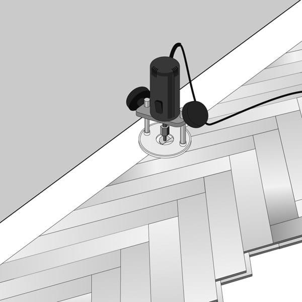 For at borten kan monteres i sammenhæng med stavene, der afslutter sildebensmønsteret, fræses en not i gulvet med en overfræser.