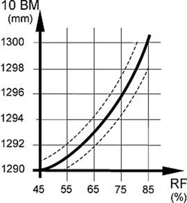 For at minimere bevægelser i gulvet som følge af svingninger i den relative luftfugtighed, bør RF være stabil gennem en længere periode.