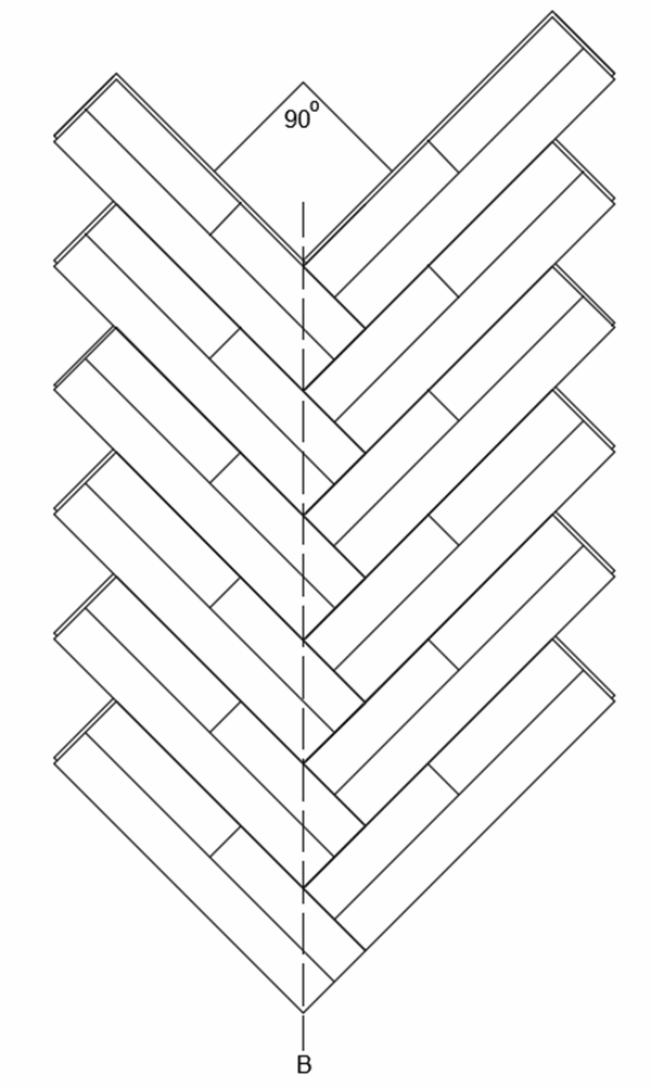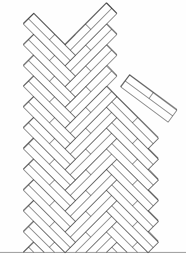 Nærværende dokument omhandler lægning af stavene i sildebensmønster, men da stavene leveres som højre- og venstrevendt, er det kun fantasien der sætter grænser for valg af mønster. Se forskellen på højre- og venstrestav i figur 2.