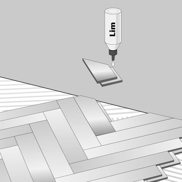 Påfør ikke mere lim, end at stavene kan lægges inden for ca. 20 min.