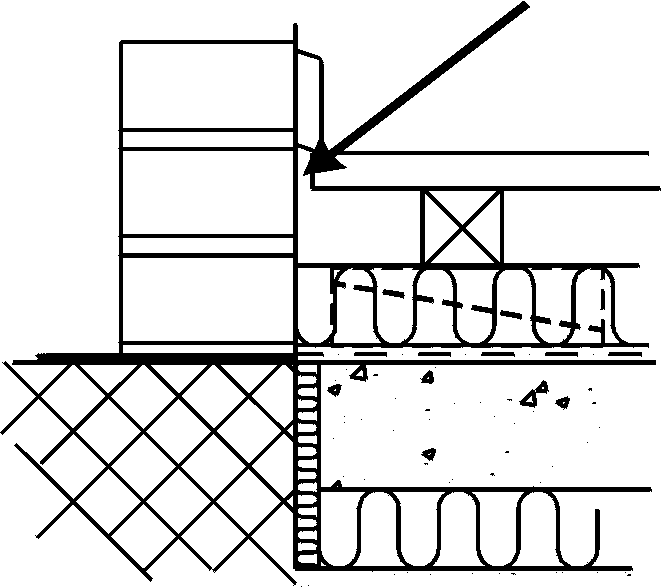 Det sikres, at undergulves hjørner og kanter langs vægge er rensede og fremstår skarpe, og frie for beton- og pudserester, således at gulvfladen kan udvide sig frit, uden at der opstår kontakt mellem underlag og undergulv eller vægge, se figur 1.