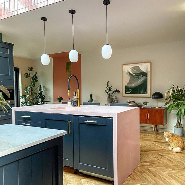 Med en stilart hvor farver og geometriske mønstre er altafgørende, er vores gulvanbefaling et massivt Dobbelt Sildebensparket eller Hexparket.