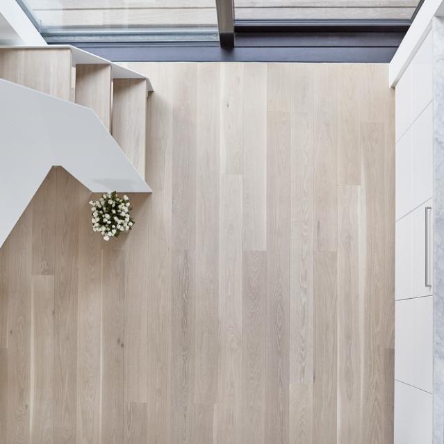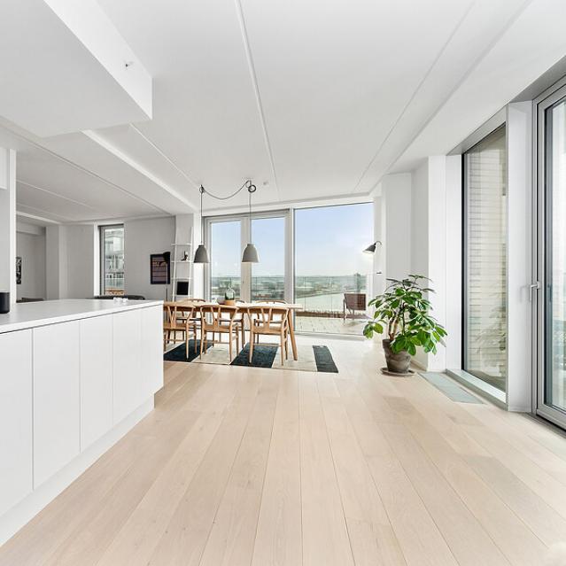 Der findes næsten ikke et mere "skandinavisk" gulv end et massivt trægulv. I en stilart hvor naturmaterialer og nuancer baseret på naturens egne elementer, er selve grundstenen, anbefaler vi vores traditionelle sildebensparket eller et lyst plankegulve.