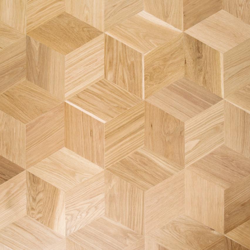 Begge gulve er helt unikke Junckers designs og vil med sikkerhed i sig selv udgøre et geometrisk kunstværk.