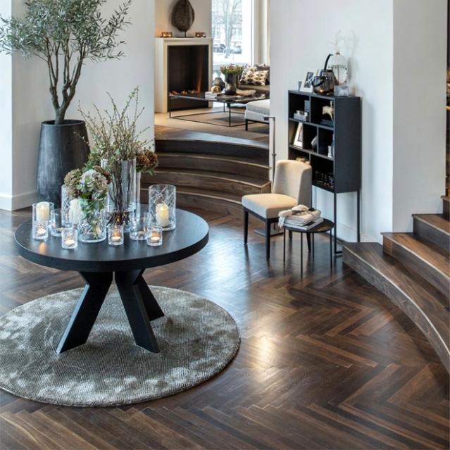 Et alternativ til sildebensplanken er et mørkt plankegulv. Ved at vælge et mørkt plankegulv, opnår du et fornemmelse af, at gulvet er én stor flade - en parallel til det populære betongulv. Du skaber samtidig en helt unik dybde i din indretning.