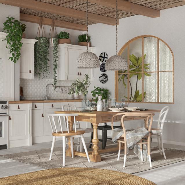 Kombineret med et touch af boheme er der garanti for et hyggeligt og personligt hjem. Farver på væggene danner grundlaget for stilen, men også en bred farvepalette på møbler og interiør er afgørende.